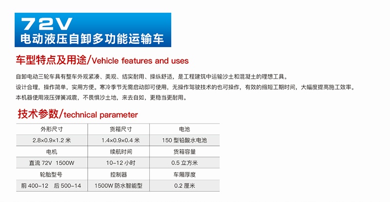 72V電動(dòng)液壓自卸多功能運(yùn)輸車